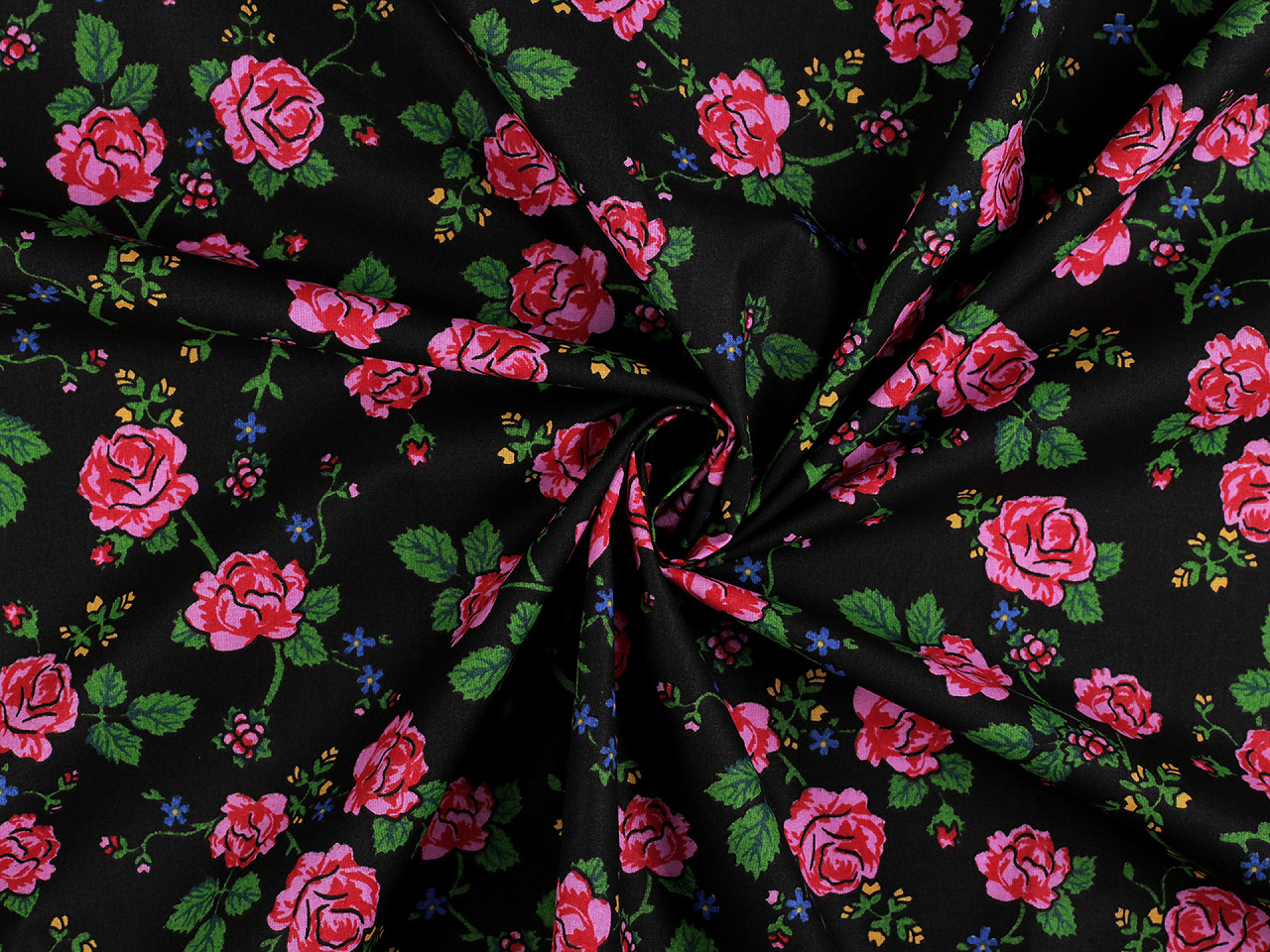 Bavlněná látka / plátno folklor růže, střední, 2 (22303-3) černáSkladem 283.2 m129 Kč/ m