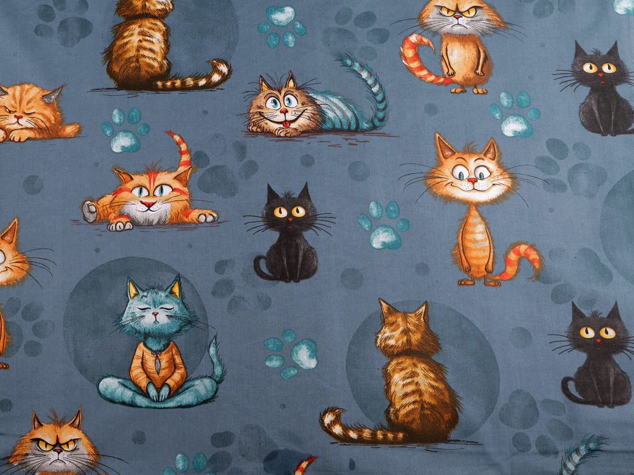 Bavlněná látka / plátno kočky, střední, (940) modrá jeansSkladem 248.3 m125 Kč/ m