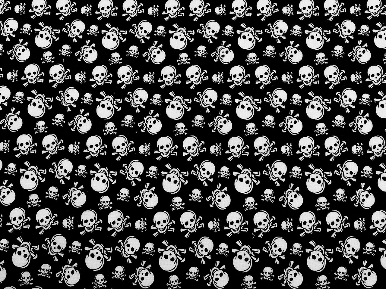 Bavlněná látka / plátno lebky, střední, černá bíláSkladem 191.4 m118,74 Kč/ m