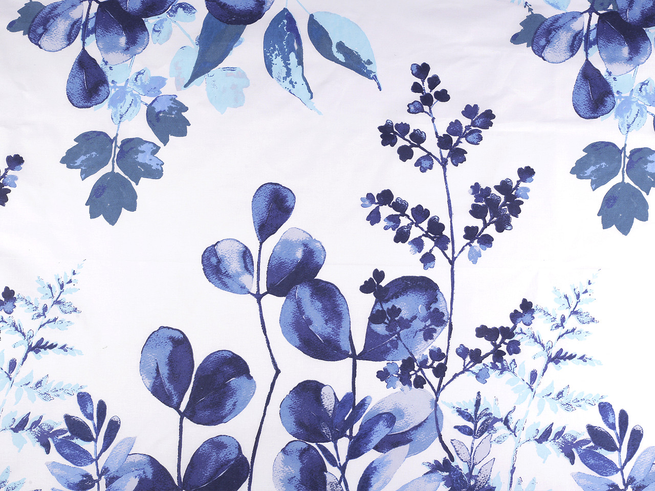 Bavlněná látka / plátno listy šíře 220 cm, střední, bílá modráSkladem 123.7 m143,75 Kč/ m