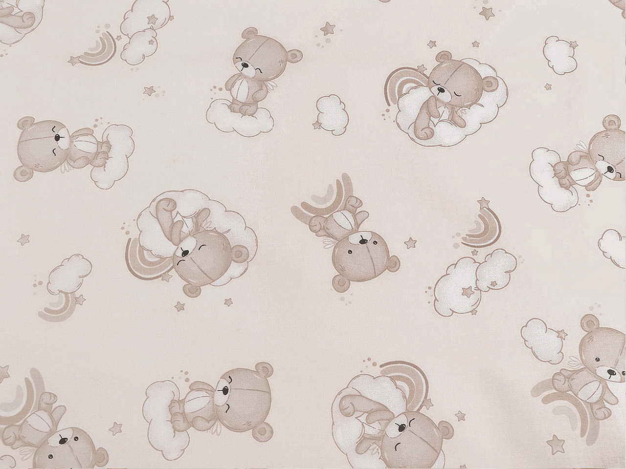 Bavlněné plátno s roztomilým potiskem medvídků je vhodné na ušití pytlíků, tašek, povlečení do postýlek, kapsářů a spoustu dalších věcí.