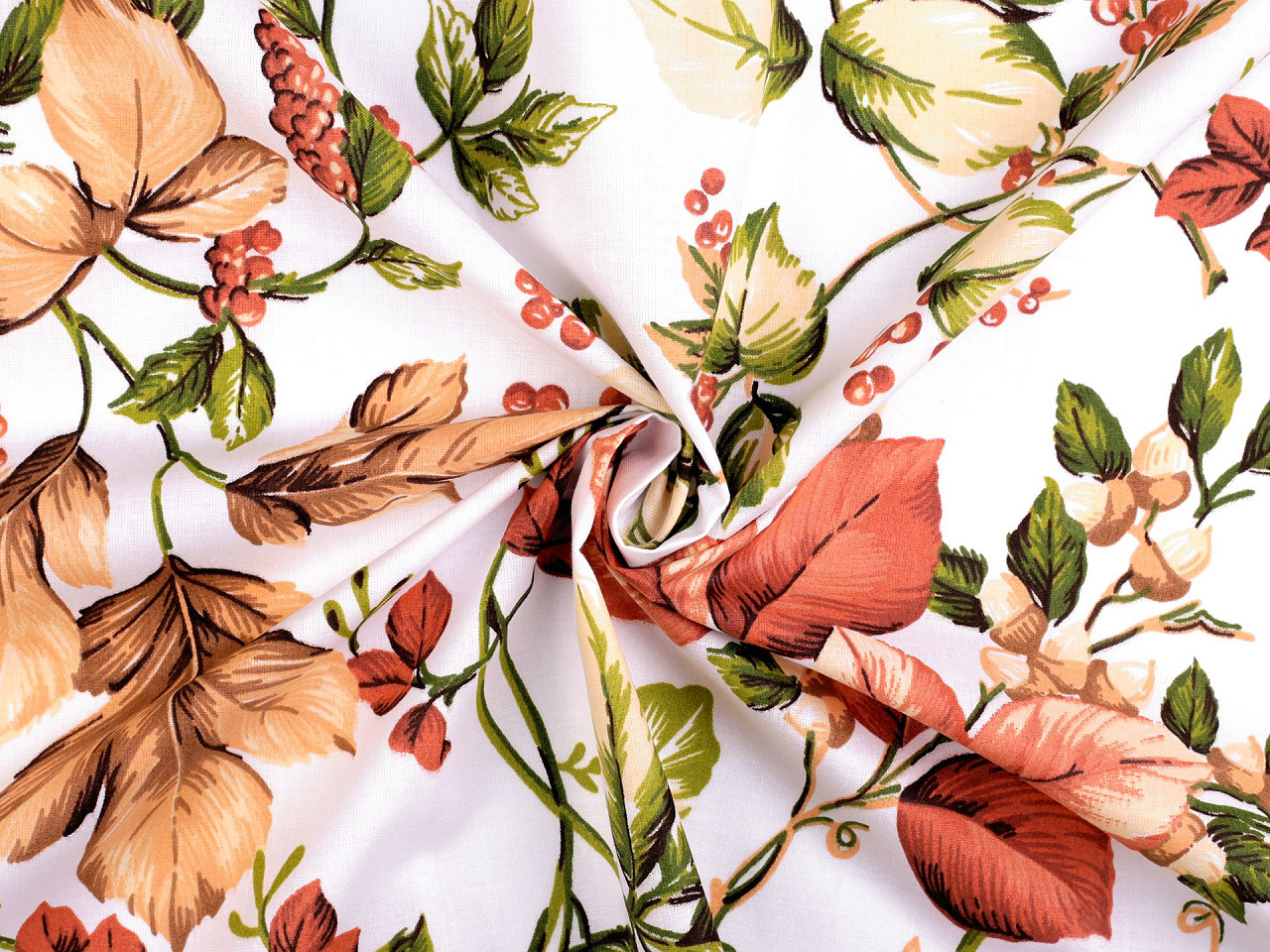 Bavlněná látka / plátno podzimní listy, střední, 1 (22333-1) bílá
