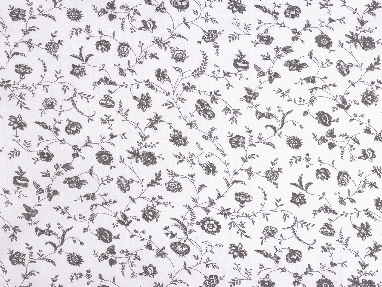 Bavlněná látka / plátno rostliny / květy, střední, 2 (28) šedáSkladem 410 m108,90 Kč/ m