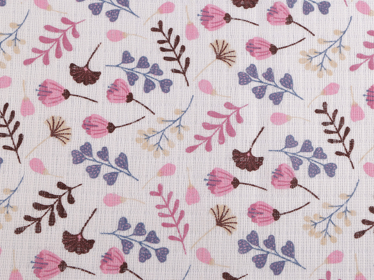 Bavlněná plenkovina je prodyšná a příjemná na dotek. Skvěle se hodí na šití plenek, baldachýnů, bryndáčků apod. Zdobí ji potisk s rostlinami.