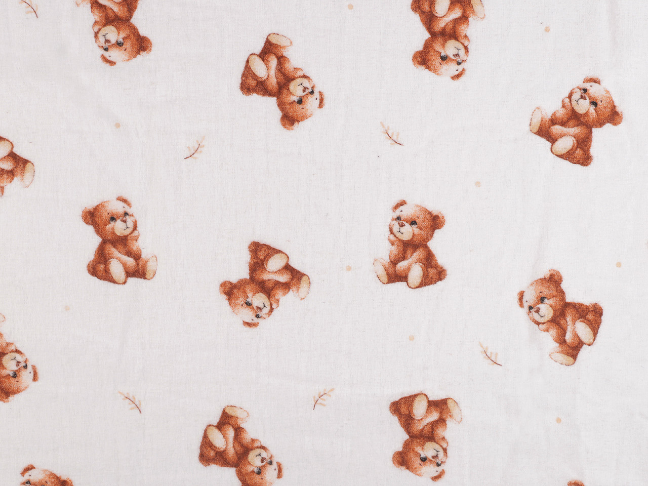Bavlněný flanel [s motivem medvídků] je měkký na dotek a v chladnějším období zahřeje. Můžete z něj ušít domácí oděvy, pyžama, povlečení, polštáře i mantinely do postýlek a hnízda pro děti.