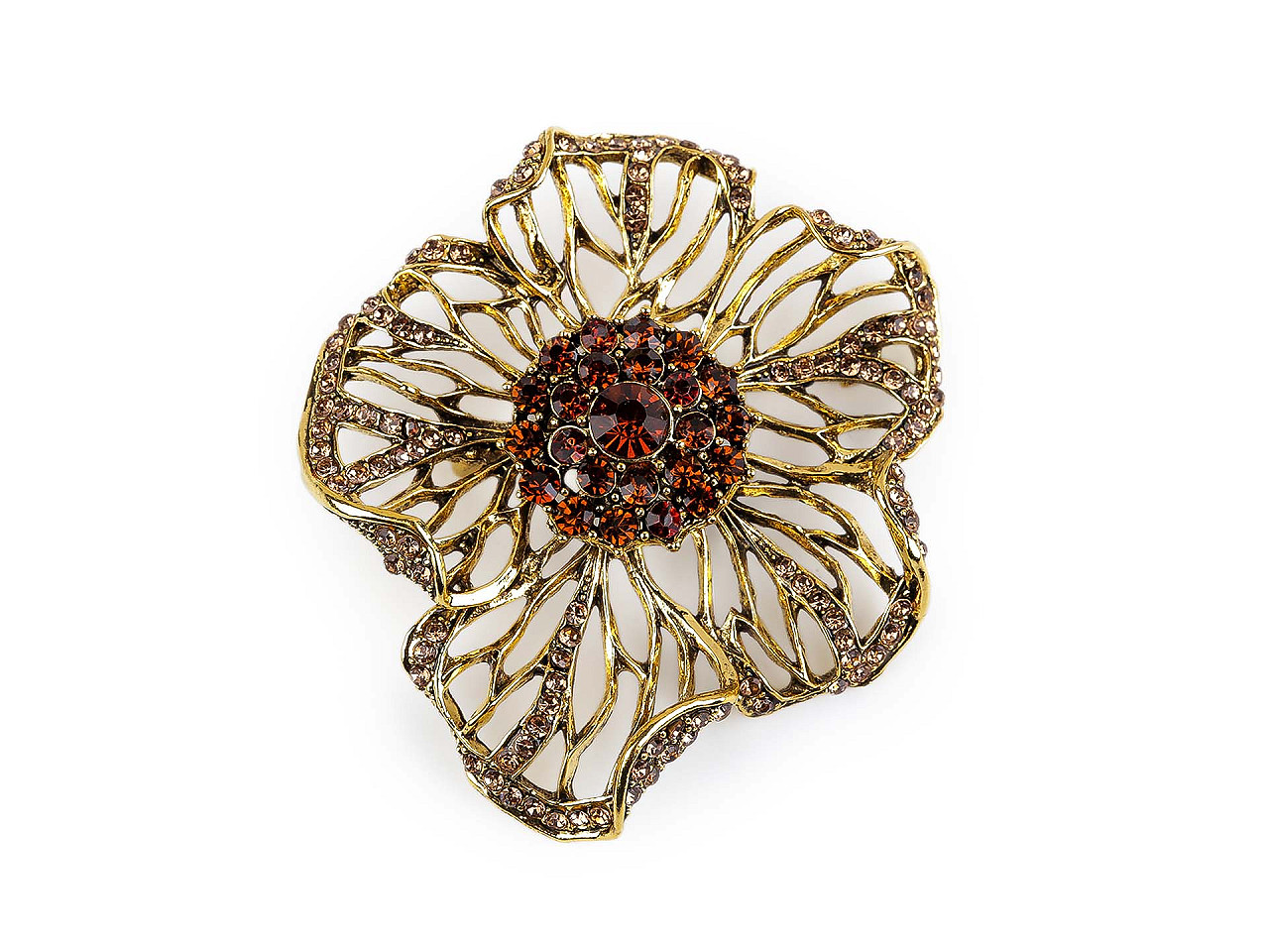 Brož s broušenýmim kamínky květ, malé, 1 siam zlatá