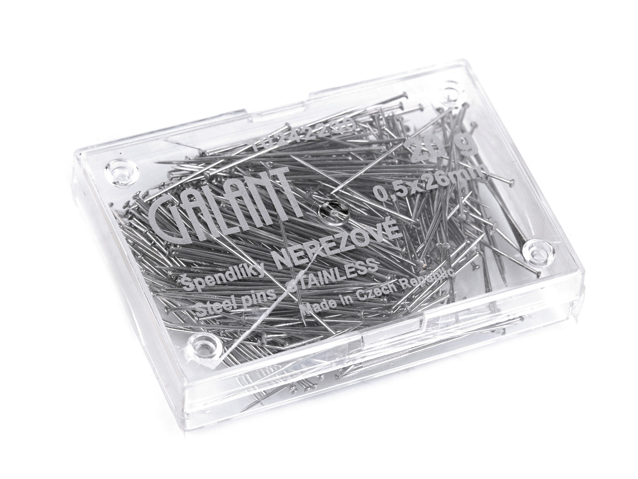 Celokovové špendlíky délka 26 mm nerezové, velké, niklSkladem 70 krab.79,06 Kč/ krab.
