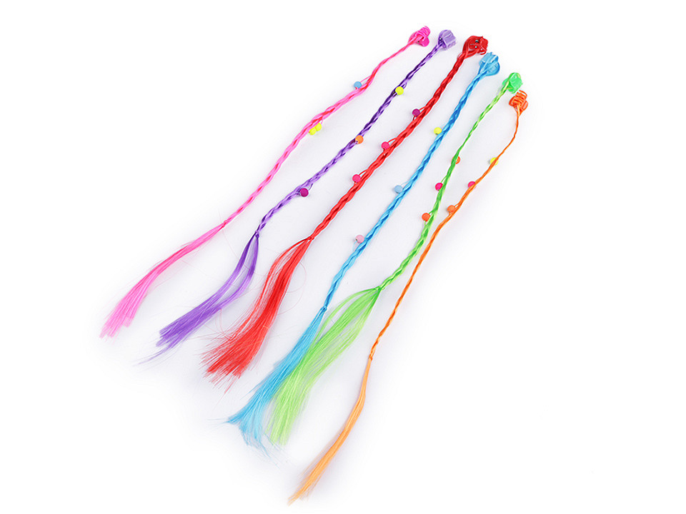 Sada barevných copánků s korálky potěší především dívky školou povinné, které sledují módní trendy. Copánky jsou připevněné na mini skřipcích. Neonové barvy korálků skvěle rozsvítí vlasy. Skřipce dobře drží i na jemných vlasech.