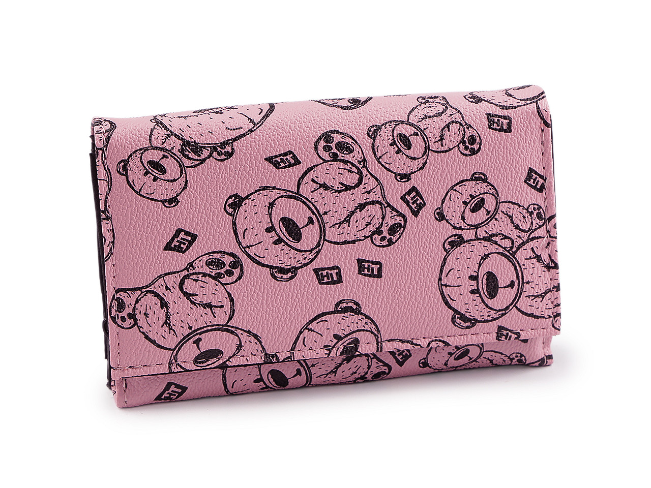 Dámská peněženka medvídek 10x15 cm, velké, 11 růžová sv.