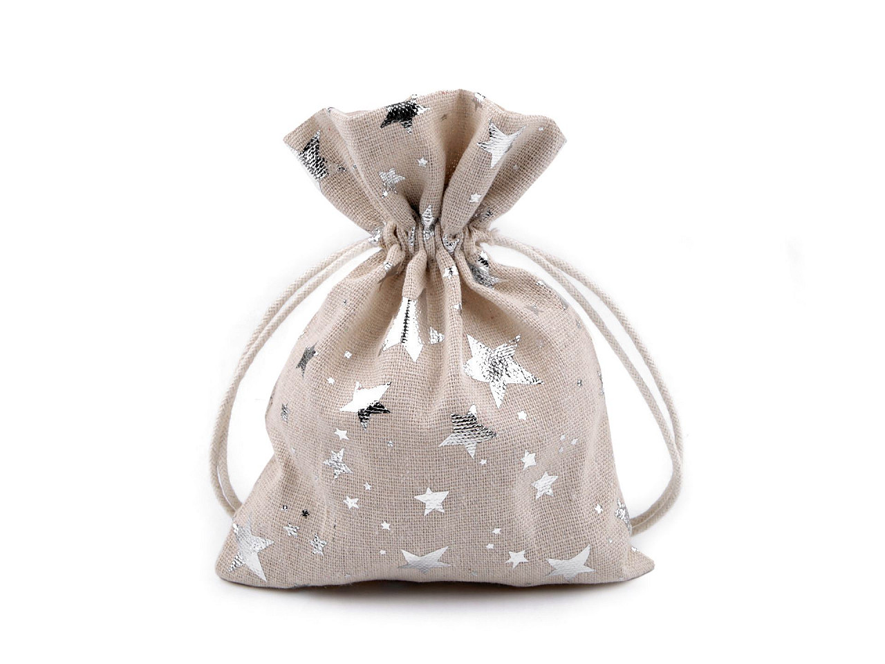- Dárkový pytlík hvězdy metalické 13x18 cm lněný, velké, 1 režná stříbrná