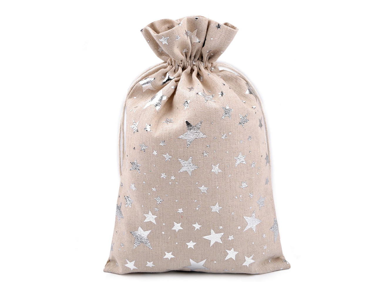 - Dárkový pytlík hvězdy metalické 20x30 cm lněný, malé, 1 režná stříbrná