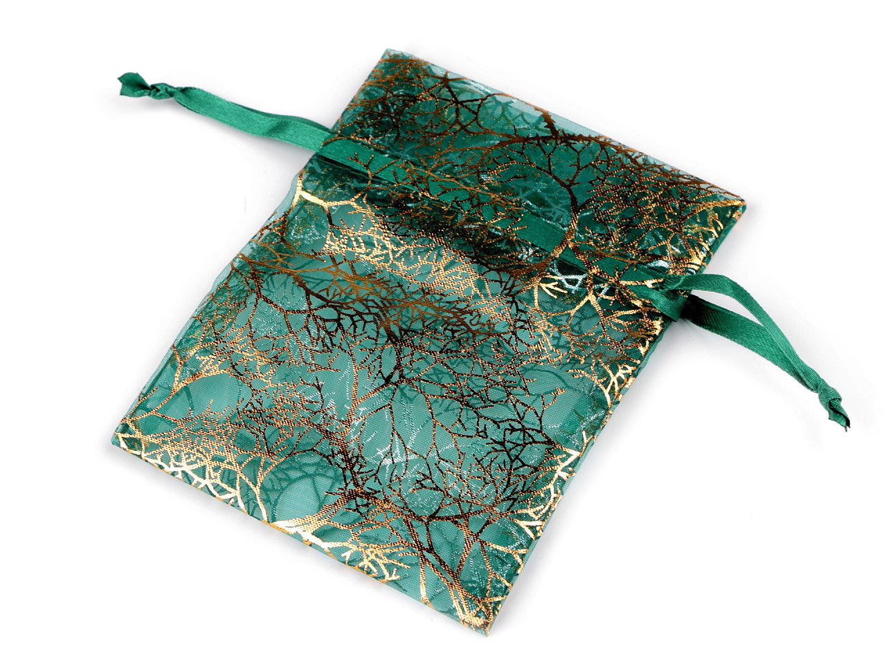 - Dárkový pytlík zlaté větvičky / strom 10x13 cm organza, malé, 2 zelená