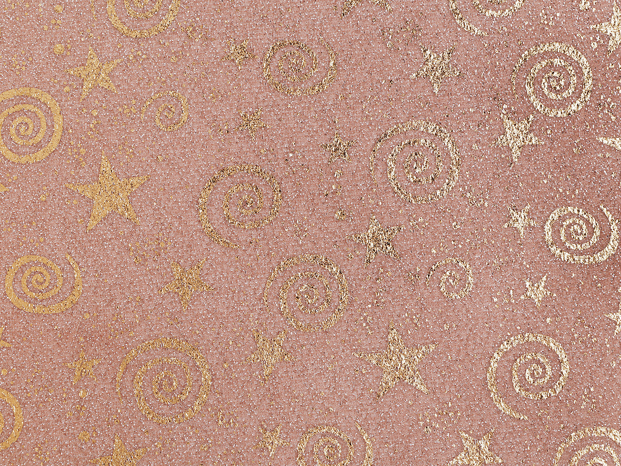Dekorační třpytivá látka je jemně průsvitná, krásně splývavá. Do délky je pevná, do šíře je velmi pružná. Na horní straně má vzor hvězdy a spirály. Využijete ji na šití pytlíků, běhounů na sváteční stůl a k různým vánočním dekoracím. Hodí se i na výrobu andělských kostýmů. Je vhodná i k balení dárků.