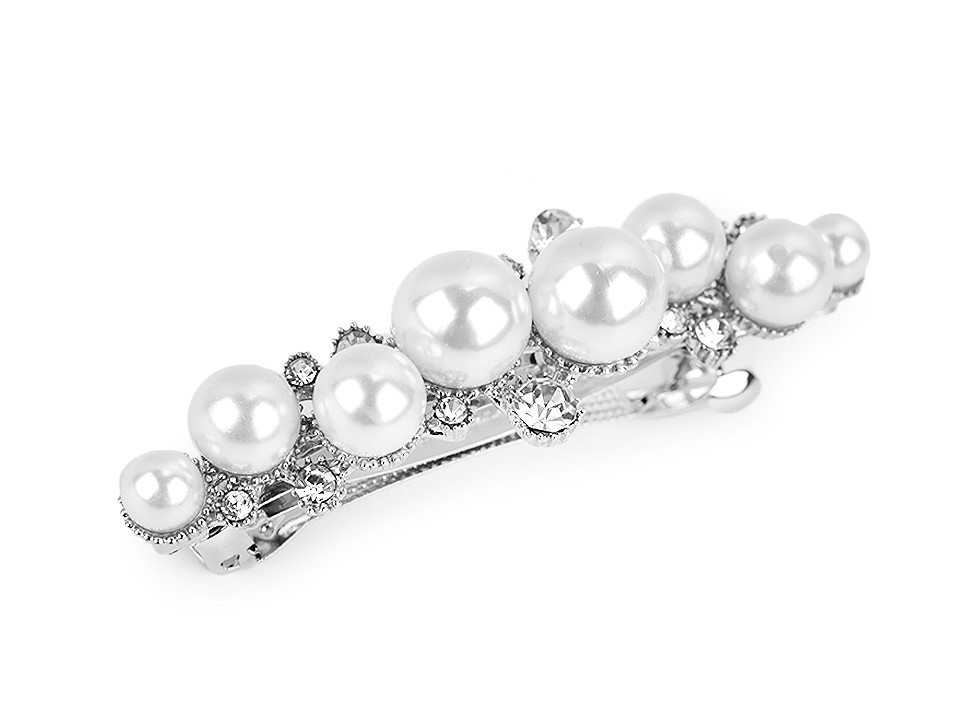 Francouzská spona do vlasů s perlami a broušenými kamínky, malé, 1 perlová platinaSkladem 85 ks108,38 Kč/ ks