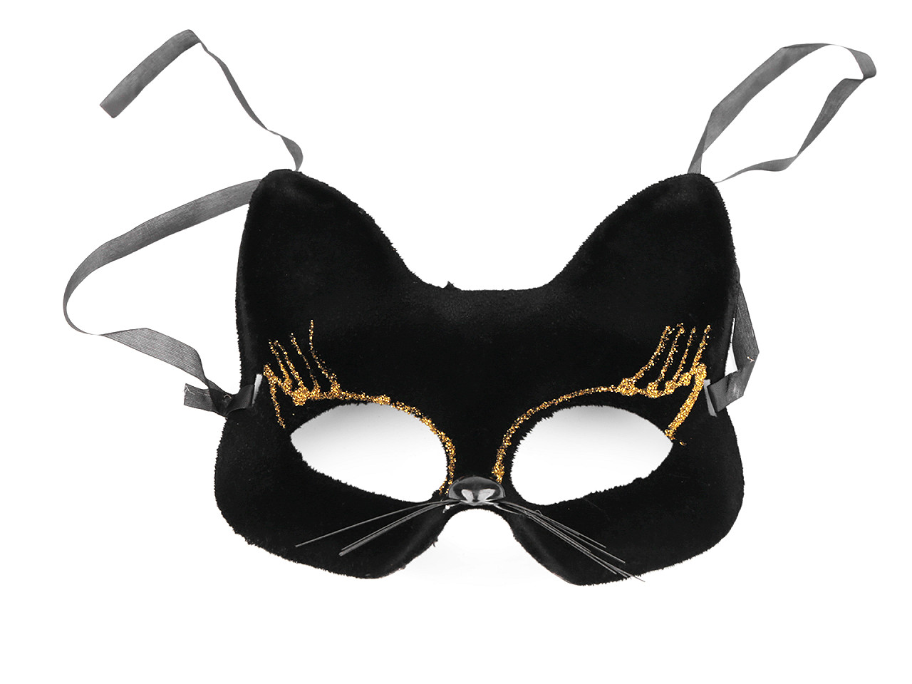 Karnevalová maska - škraboška sametová s glitry kočka, malé, 2 černá zlatá