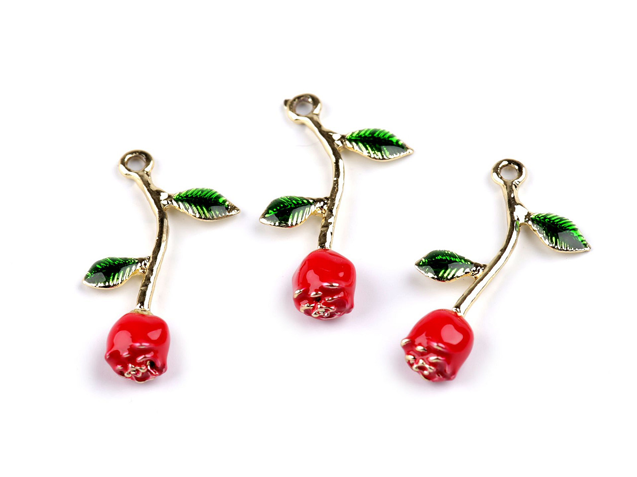 - Kovový přívěsek / taháček na zip růže 3D, malé, 2 červená zelená