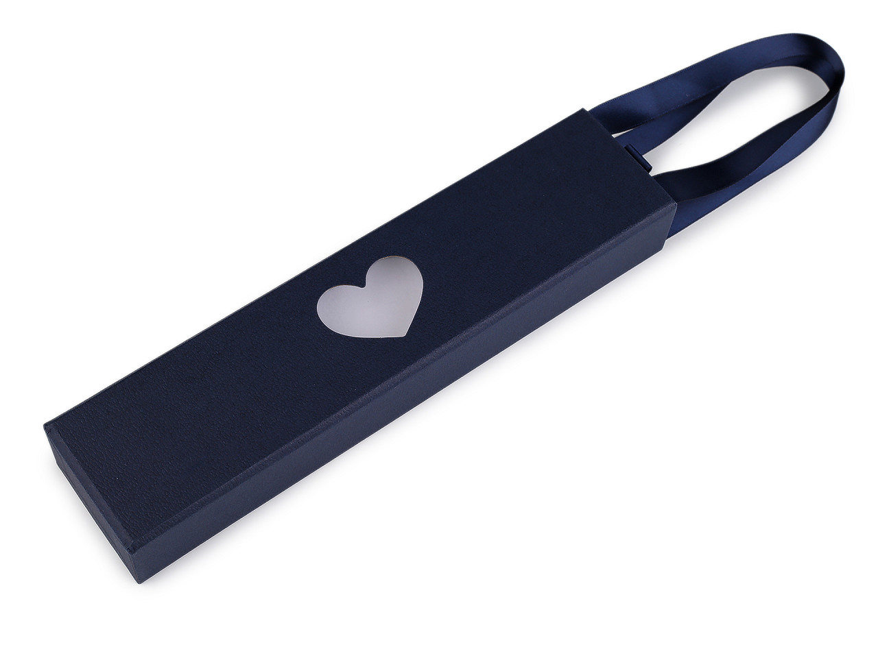 - Krabička na šperky s průhledem srdce a uchem 5x22 cm, malé, 4 modrá tmavá