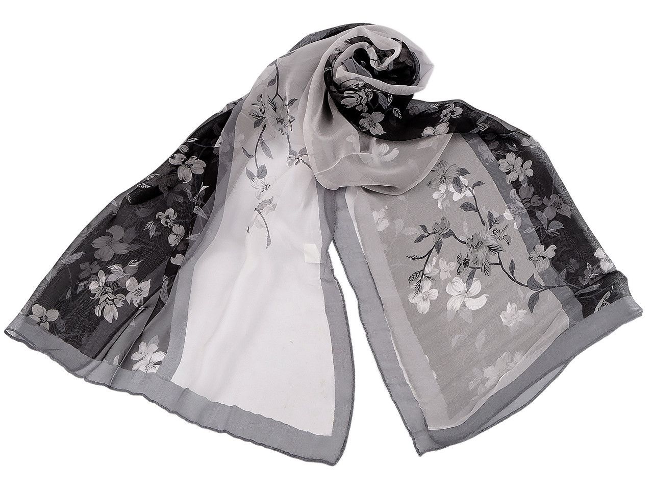 - Letní šátek / šála 50x155 cm, velké, 19 šedá světlá květy