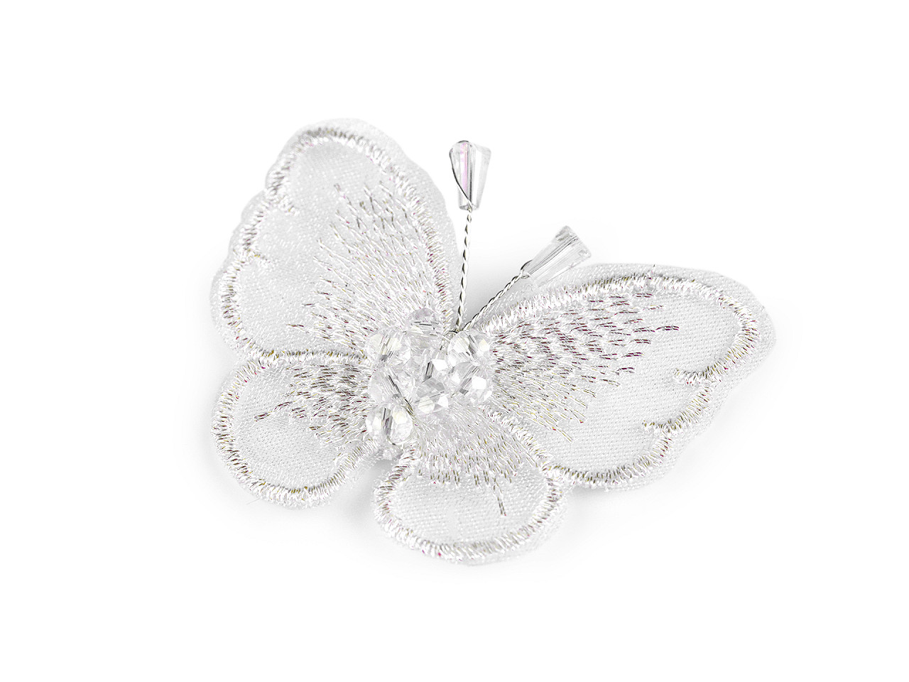 Motýl s broušenými korálky k našití a nalepení, střední, Off WhiteSkladem 1052 ks17,79 Kč/ ks
