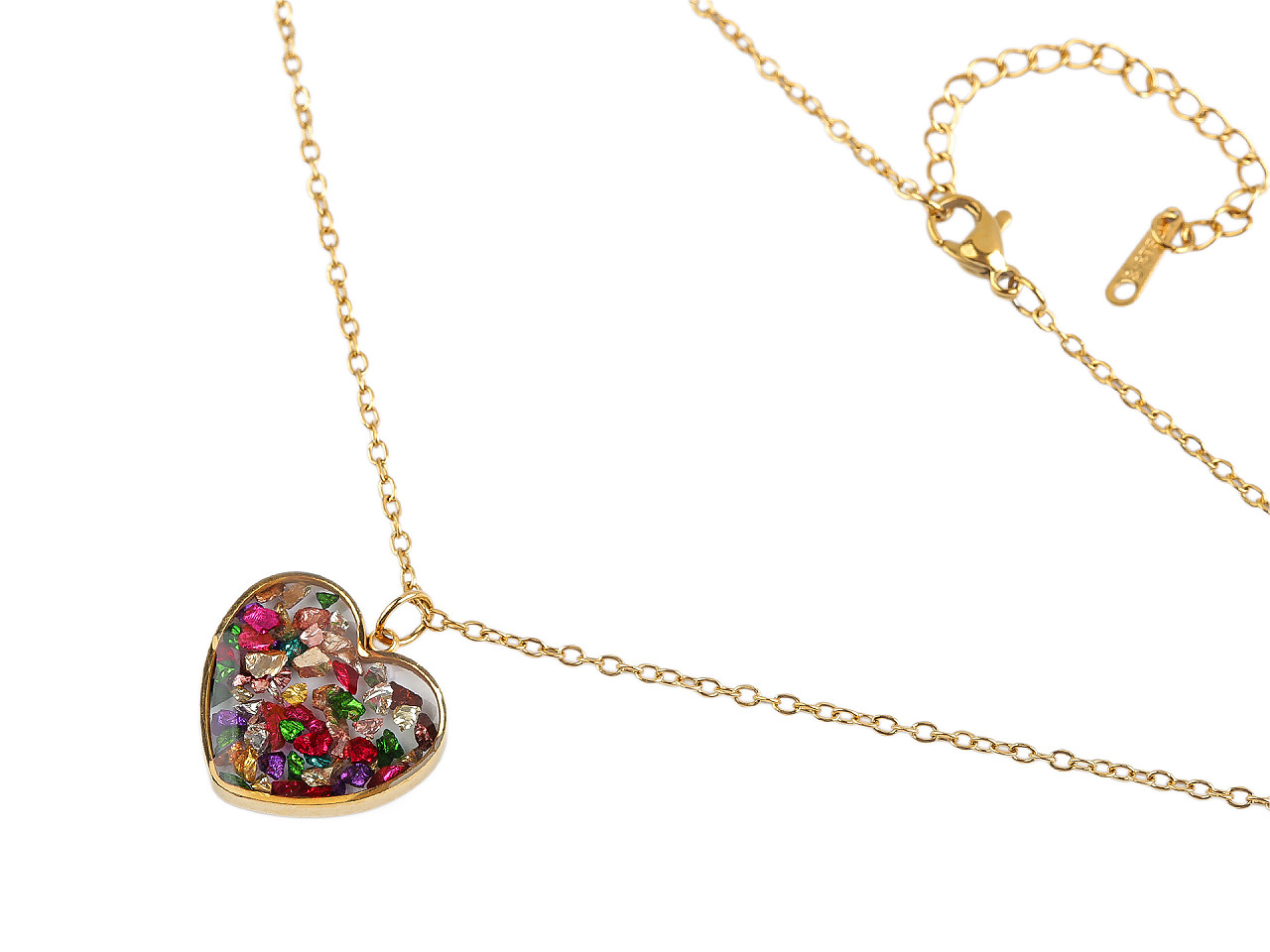 Řetízkový náhrdelník se srdcem je vyrobený z kvalitní nerezové oceli. Potěší ženy, které milují netradiční, ale přitom nápadité šperky, protože uvnitř srdce jsou zalité v křišťálové pryskyřici perleťové zlomky nebo zlomky broušených kamínků. Bude ideálním doplňkem pro různé příležitosti, ať už se jedná o každodenní nošení či speciální události. Náhrdelník bude i nádherným dárkem pro blízkou osobu nebo na Valentýna.