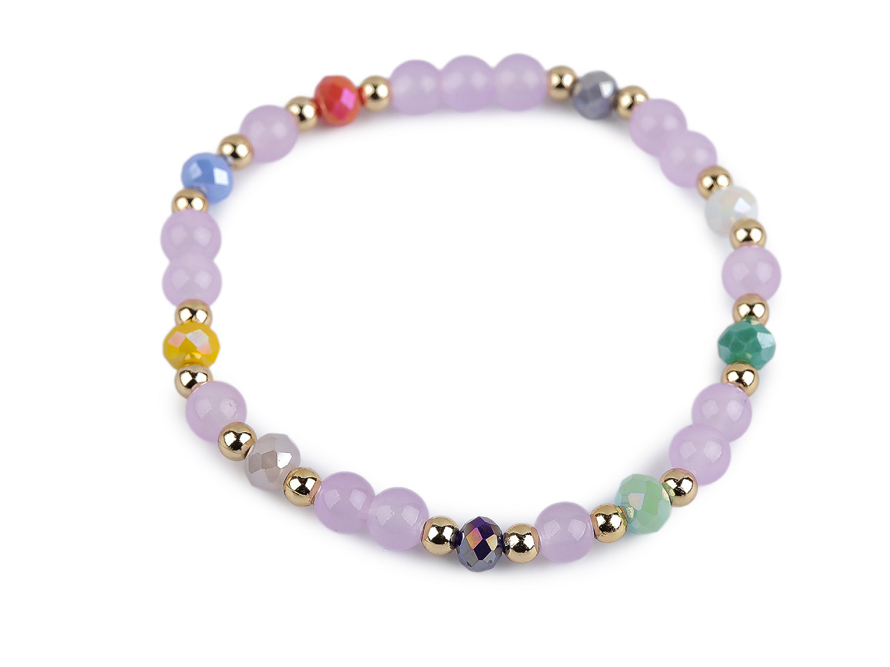 Náramek pružný ze skleněných korálků, malé, 4 růžová nejsv.