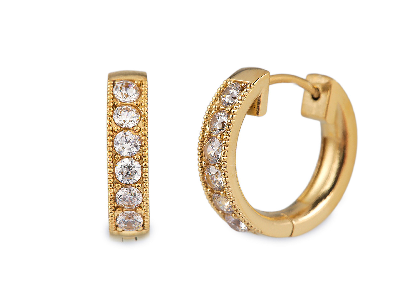 Náušnice z nerezové oceli kroužky s broušenými kamínky, střední, 2 zlatáSkladem 22 pár249,74 Kč/ pár