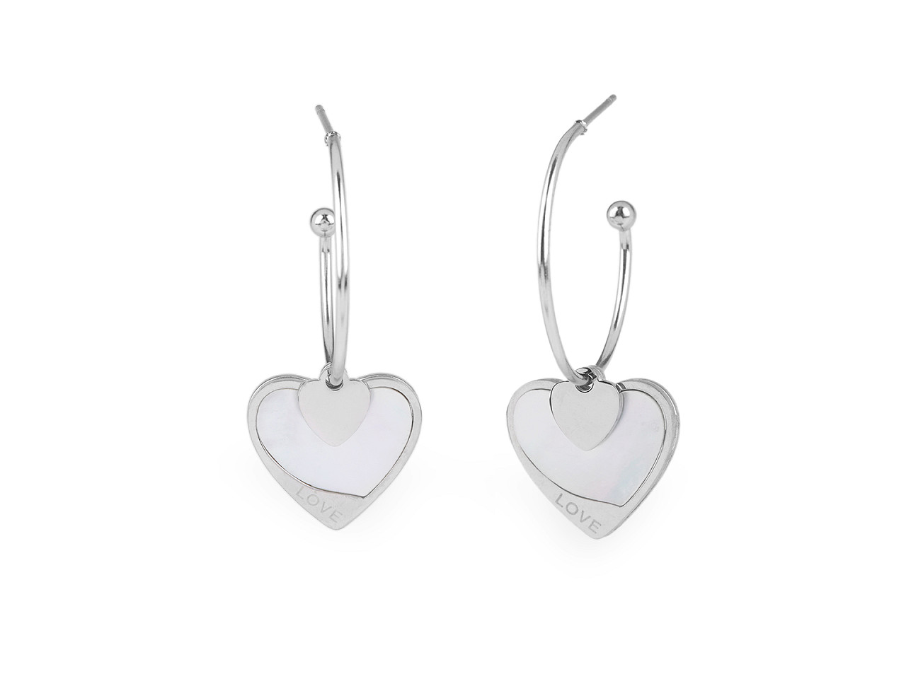 Náušnice z nerezové oceli kruhy srdce, střední, 1 stříbrná