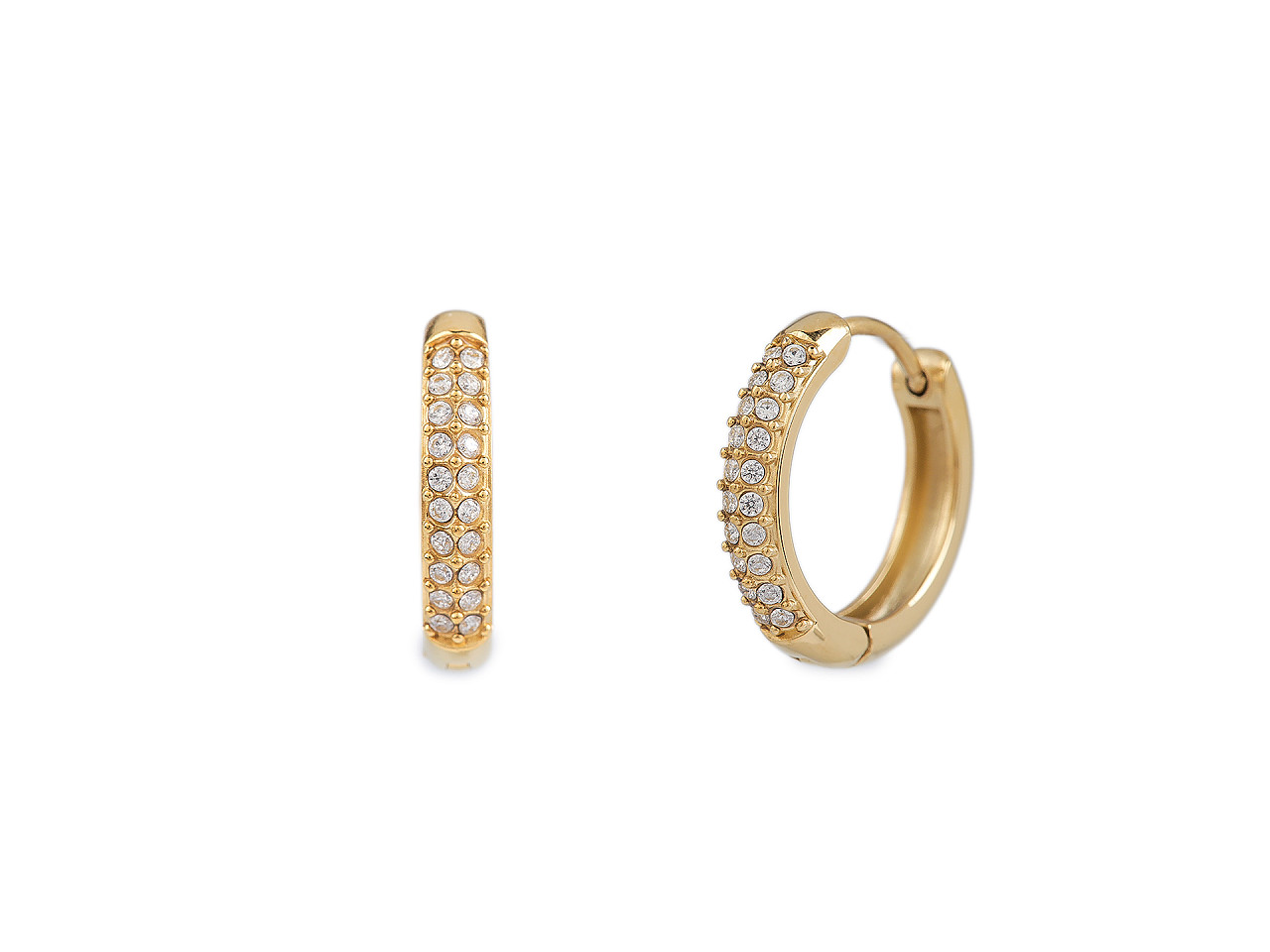 Náušnice z nerezové oceli s broušenými kamínky, střední, 2 zlatá