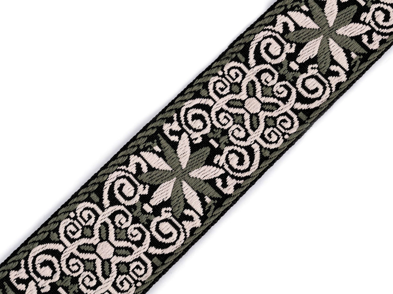 Popruh s výšivkou šíře 50 mm, střední, 1 zelenáSkladem 967.6 m70,42 Kč/ m