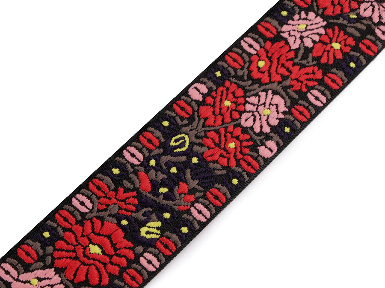 Popruh s výšivkou šíře 50 mm, střední, 2 červenáSkladem 1234.5 m51,96 Kč/ m