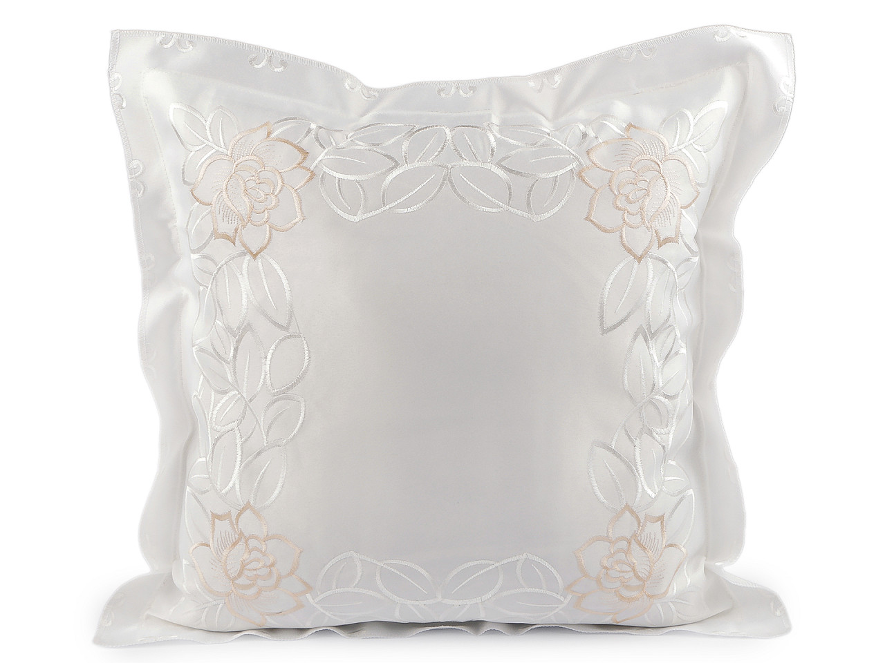 Povlak na polštář vyšívaný 45x45 cm, střední, 3 bílá béžová světlá