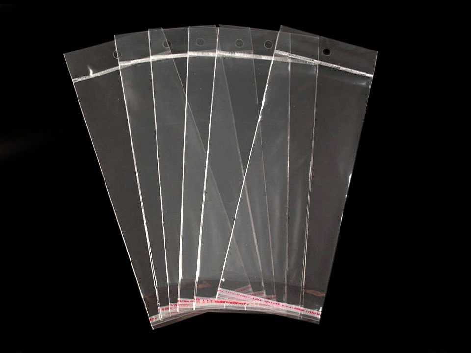 - PP sáček s lepicí klopou a závěsem 10x22 cm, malé, transparent