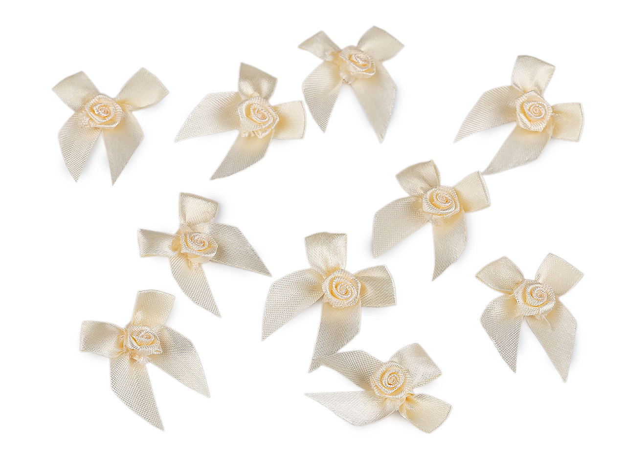 - Saténová mašlička s růžičkou, střední, 2 krémová