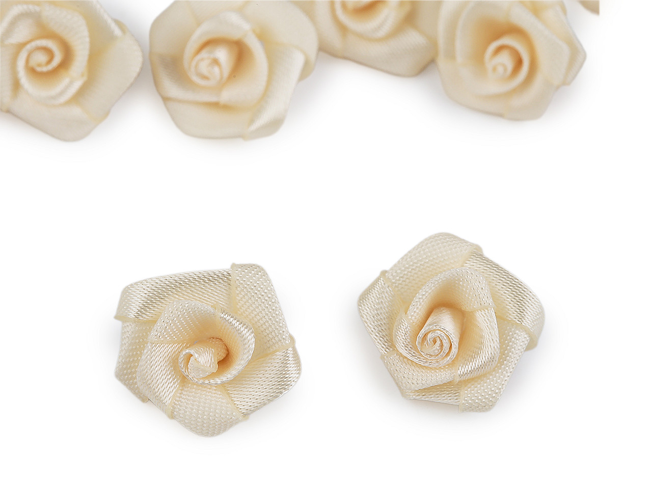 - Saténová růže Ø15 mm, velké, 2 krémová světlá