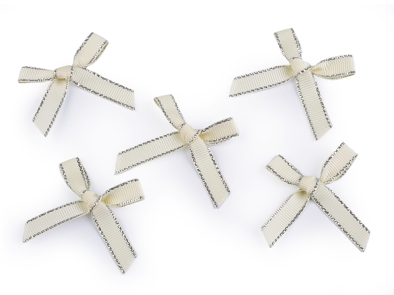 - Svatební / dekorační rypsová mašlička s lurexovým okrajem, střední, 2 krémová nejsvět.
