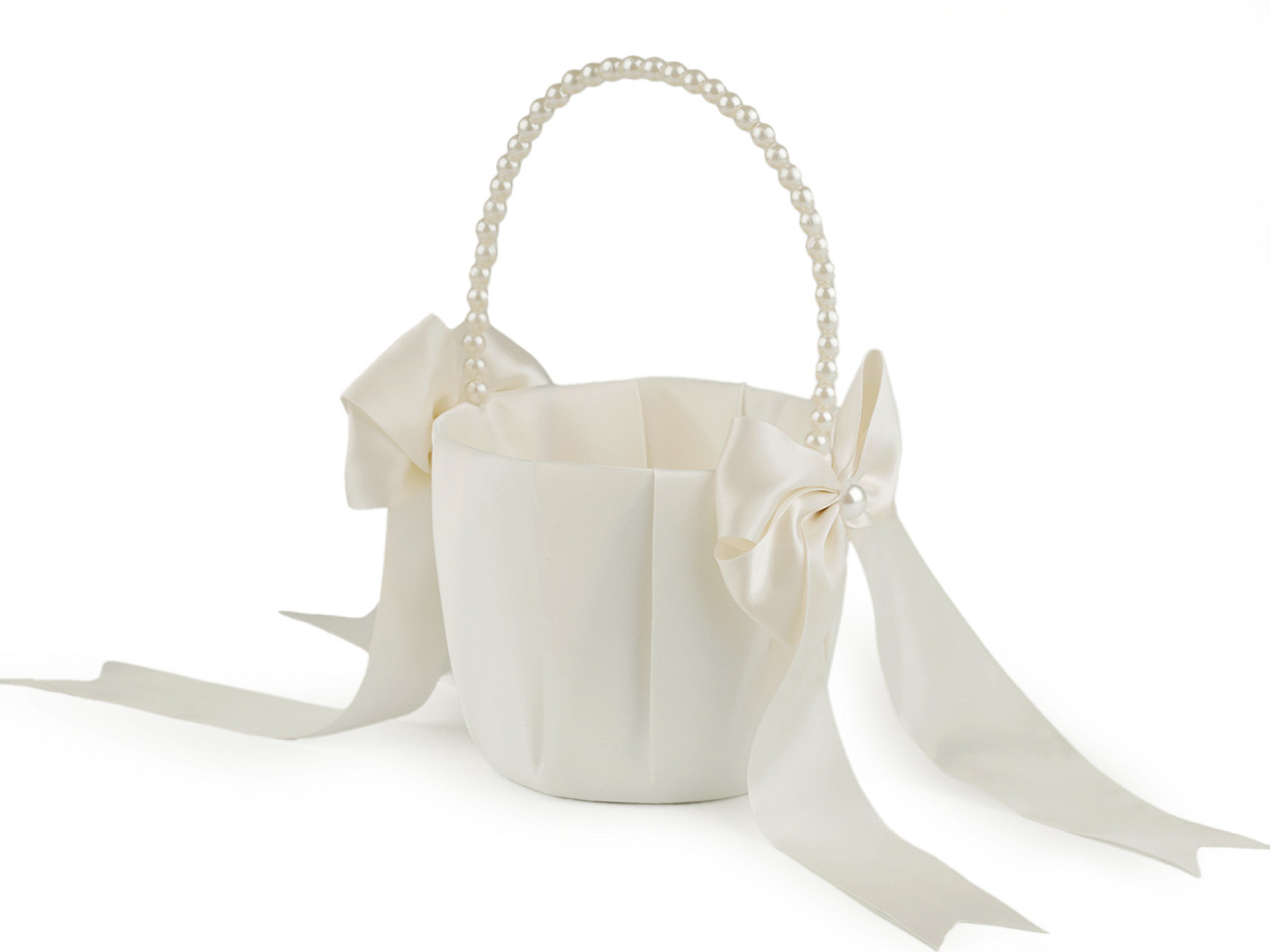 - Svatební saténový košíček pro družičky, s perlami, střední, 2 krémová nejsvět.