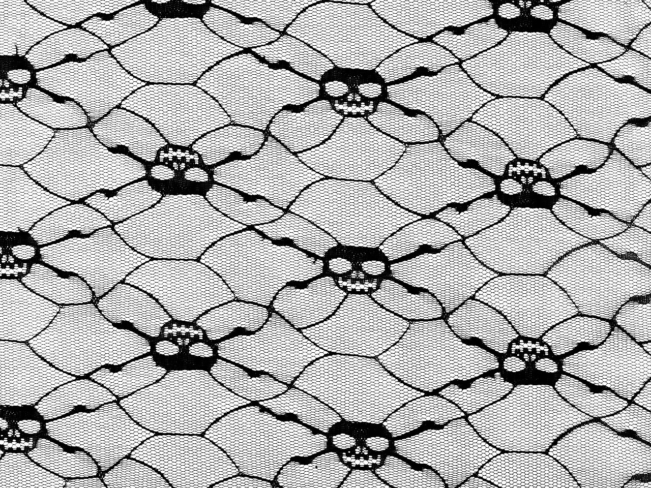 Jemný splývavý tyl se svým designem hodí na halloweenské kostýmy a strašidelné aranžování. Najdete na něm motivy lebek.