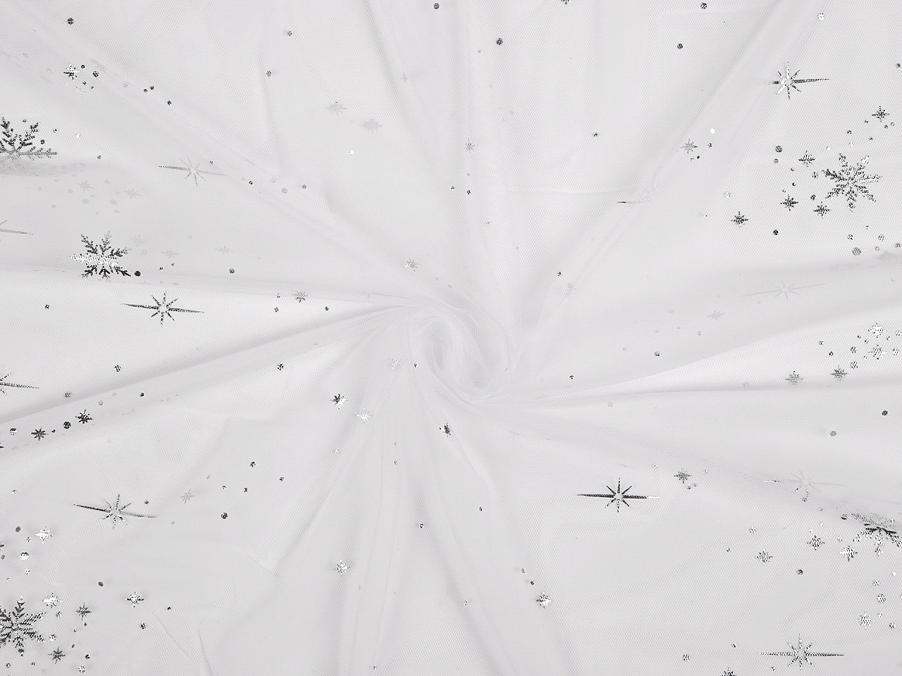 Tyl s potiskem vloček je jemný, měkký a pružný po šíři. Využijete ho na šití sukýnek, karnevalových kostýmů i různých dekorací a zimních aranžmá. Potisk vloček je lesklý a najdete ho po celé šíři na obou stranách.