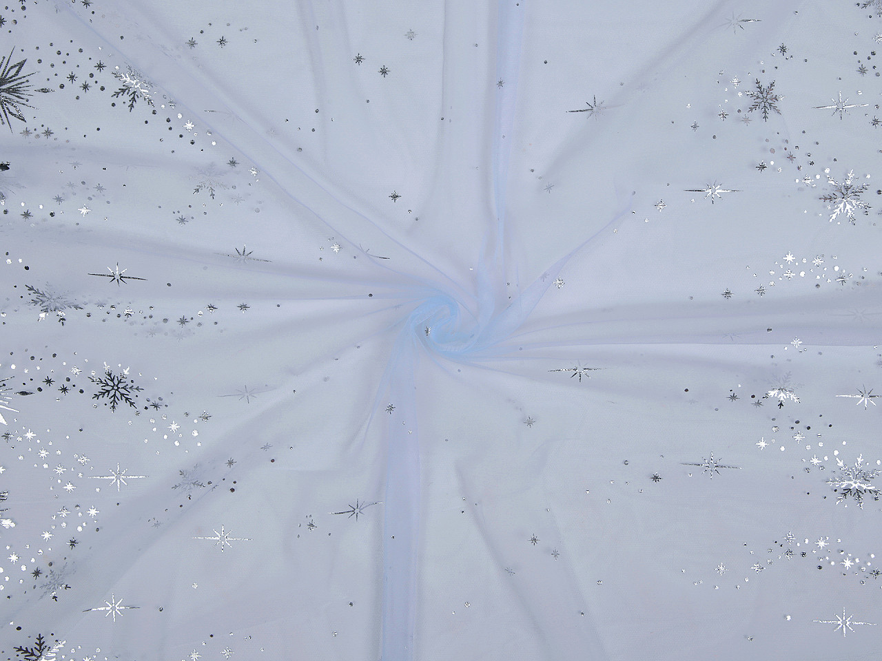 Tyl s potiskem vloček je jemný, měkký a pružný po šíři. Využijete ho na šití sukýnek, karnevalových kostýmů i různých dekorací a zimních aranžmá. Potisk vloček je lesklý a najdete ho po celé šíři na obou stranách.