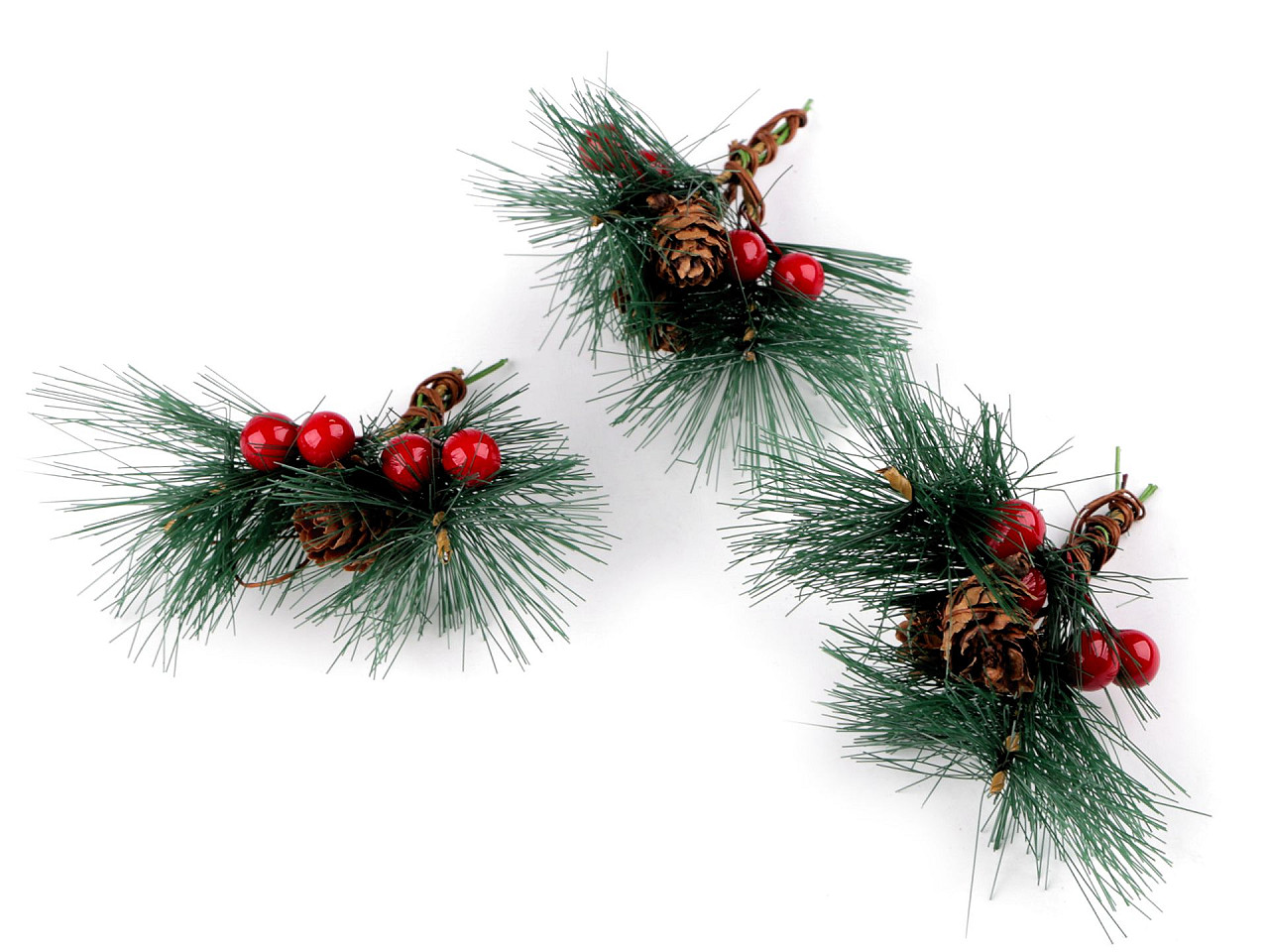 Umělá mini větvička s bobulemi a šiškami oživí podzimní a zimní aranžmá. Můžete ji zakomponovat do květinových vazeb, věnců nebo květináčů.