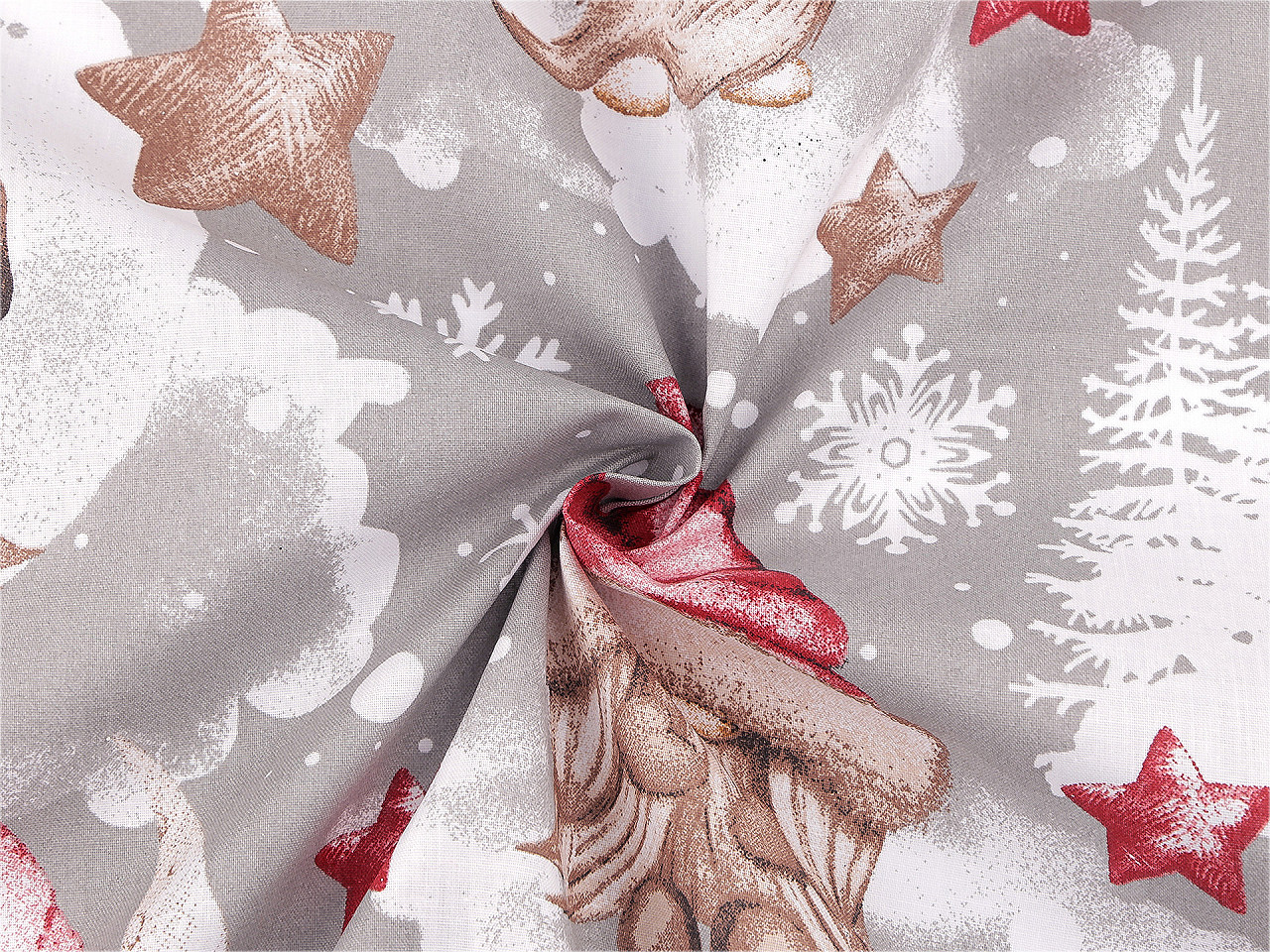 - Vánoční bavlněná látka / plátno skřítek, střední, šedá