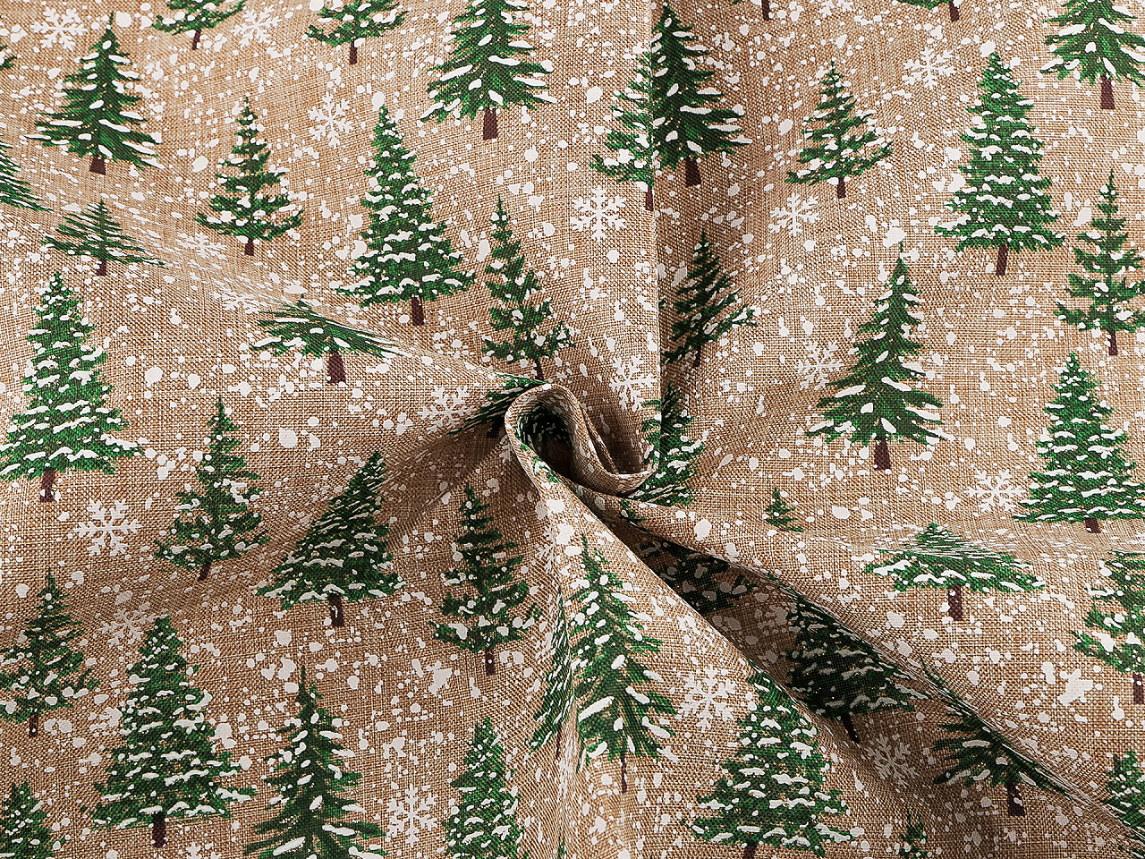 Dekorační metráž zdobí potisk zasněžených stromků, které doplňují třpytivé glitry. Využijete ji na šití pytlíčků, ubrusů, prostírání apod. Na dotek je tužší a pevnější, není měkká jako klasická bavlna.