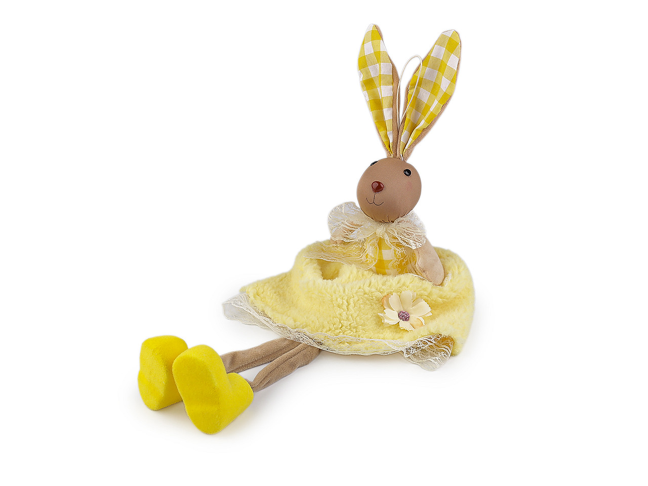 Velikonoční zajíček vnese do vašeho domova hravost a svěžest jara. Má roztomilý vzhled. Můžete ho posadit na stůl, na poličku apod. Díky poutku ho lze také kamkoli pověsit (na dveře, na zeď, do oken apod.). Sukýnku má z jemného plyše, nožičky volně visí.