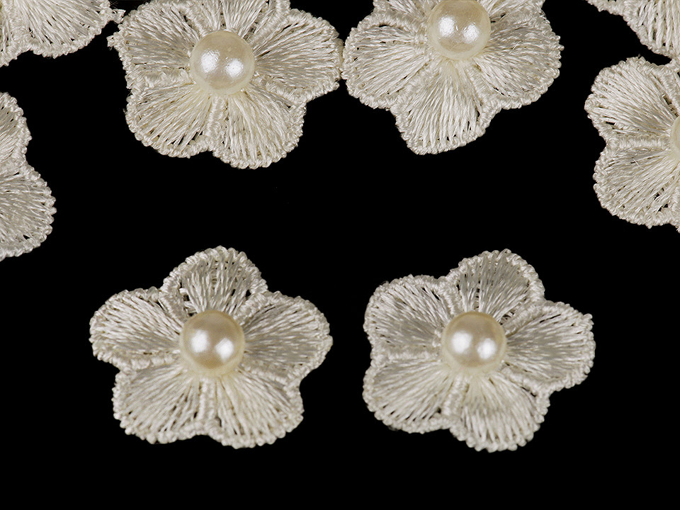 - Vyšívaný květ Ø2 cm s perlou, malé, 2 krémová světlá