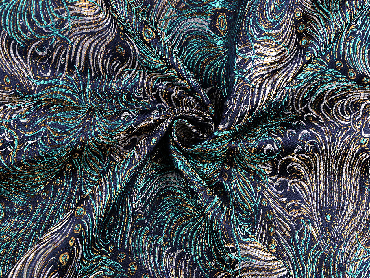 Žakárová látka pro oděvy i dekoraci, střední, 3 (175 g/m²) tyrkysová